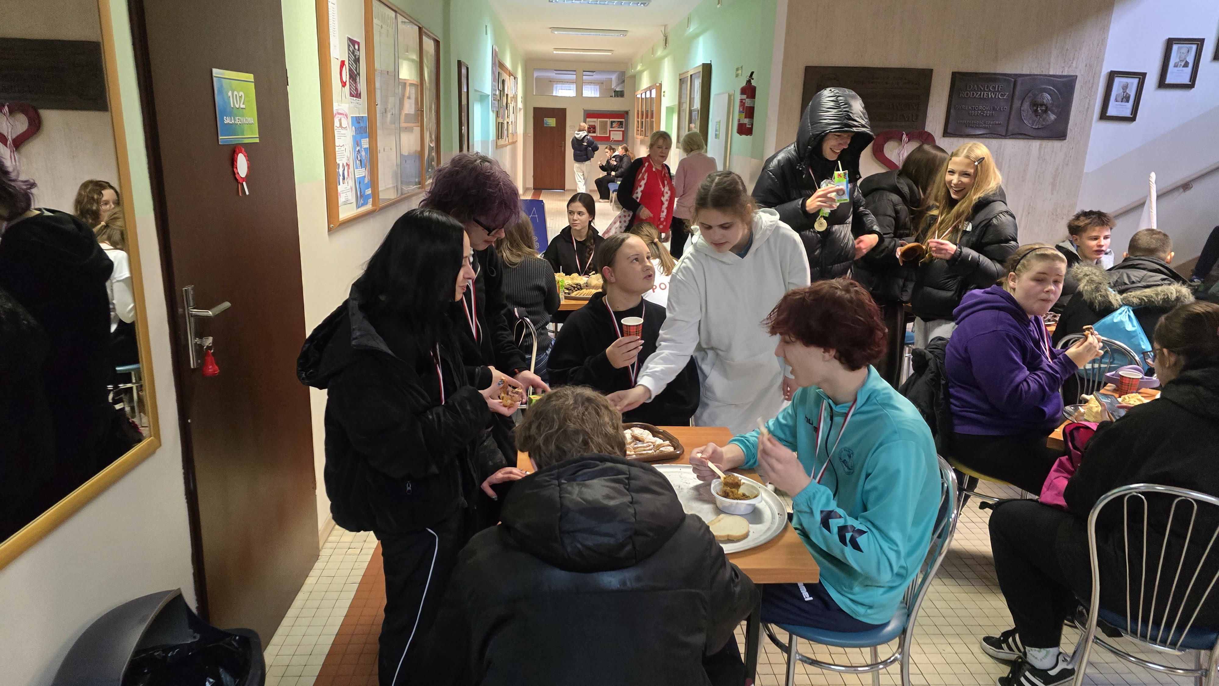 Atmosfera była pełna energii i wzajemnego dopingu, dzięki czemu każdy z nas dobiegł do mety z uśmiechem. Po biegu wróciliśmy do szkoły, gdzie czekały na nas pyszne przekąski przygotowane specjalnie na tę okazję. Wspólne świętowanie przy stole jeszcze bardziej zintegrowało naszą trzymającą się zawsze razem grupę.