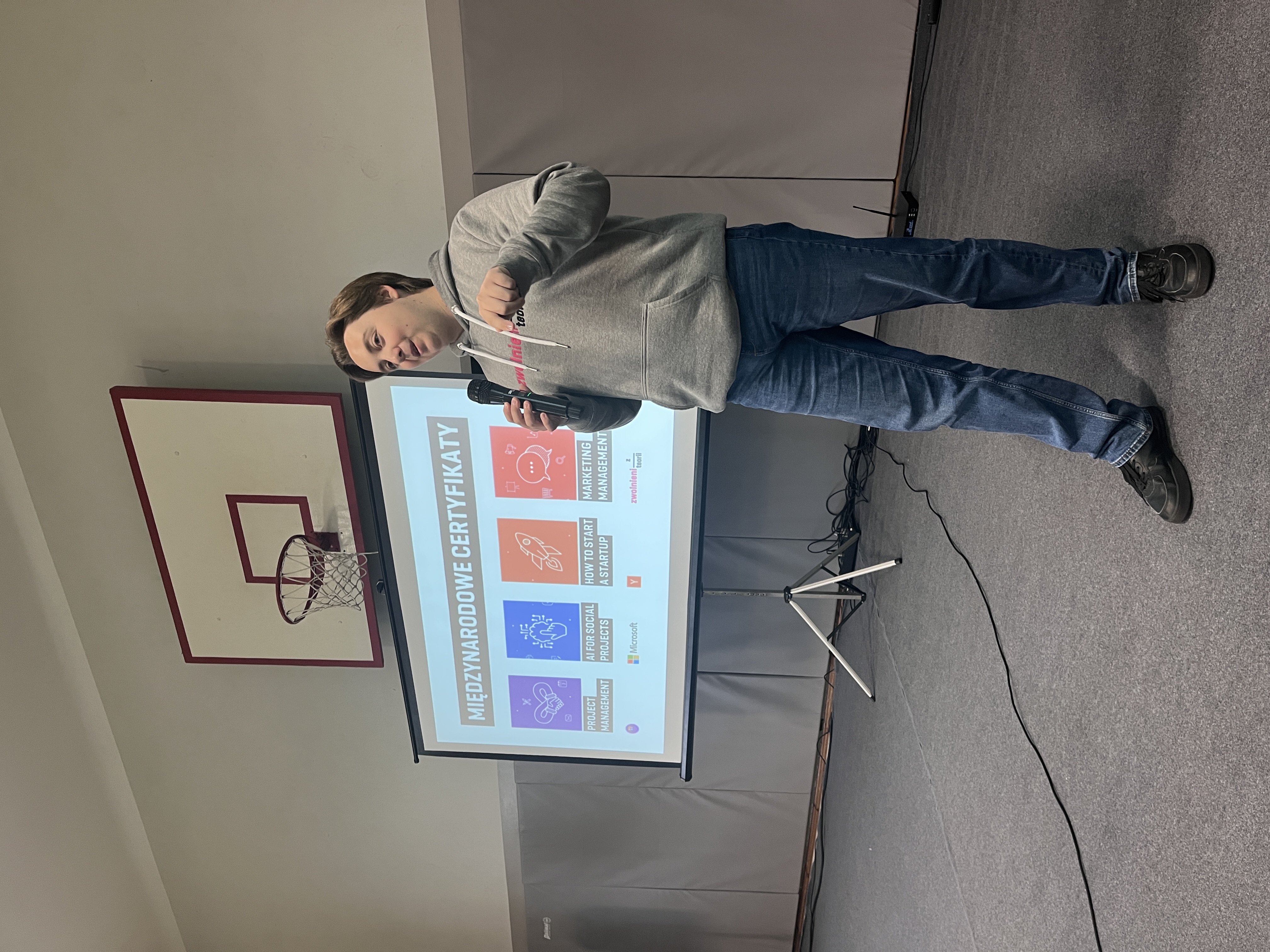 Nasz gość opowiedział wszystkim pierwszoklasistom, jak założyć zespół, zrealizować projekt i zdobyć międzynarodowy certyfikat zarządzania projektami społecznymi! To wyjątkowa szansa, by posiąść kompetencje miękkie i by wejść w posiadanie dodatkowych punktów podczas rekrutacji na studia! To jedyna olimpiada, która nie jest oparta na wiedzy książkowej, lecz na działaniu, współpracy i wyjściu ze szkolnej ławki!